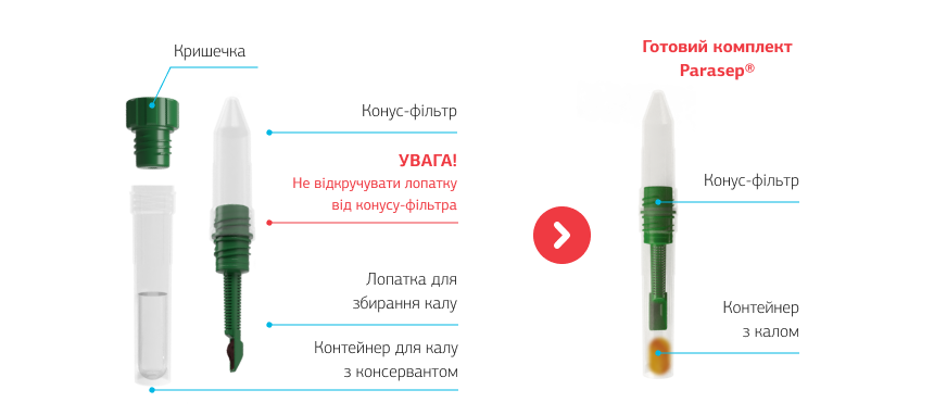 ВАЖНО соблюдать инструкцию по сбору кала в PARASEP® и доставлять кал в правильно собранном комплекте PARASEP®