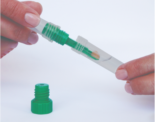![]() 3. Поместить лопатку с калом в контейнер с консервантом, плотно закрутить и встряхнуть контейнер для перемешивания консерванта с калом. |