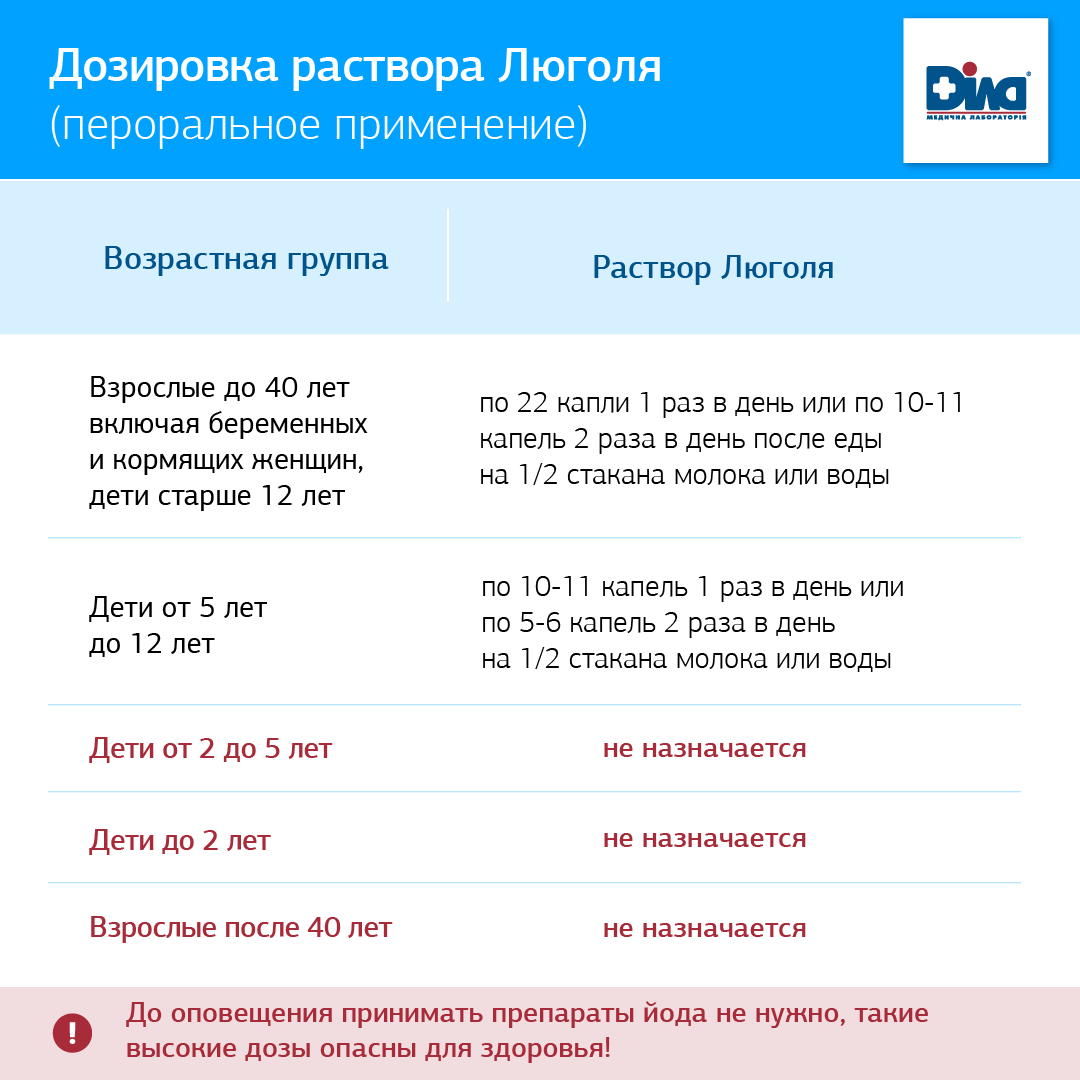 Для йодопрофилактики украинцам доступно два препарата – спиртовой и водный растворы йода. Схемы приема и дозировки следующие: